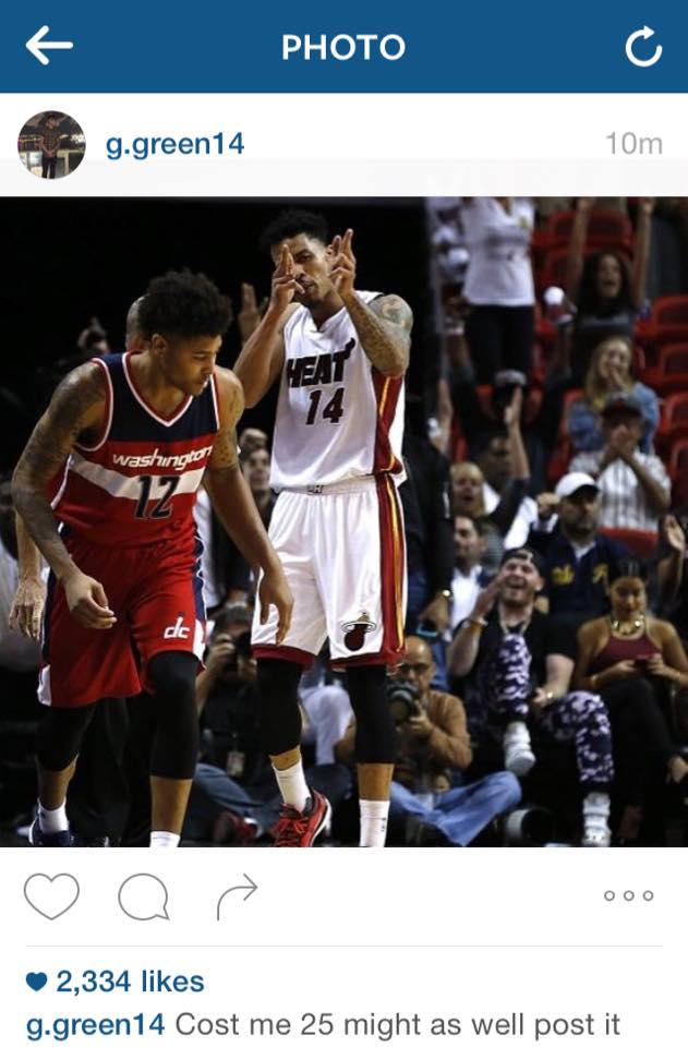 NBA fines Gerald Green $25k for this gesture... He took to Instagram to "may as well post it."