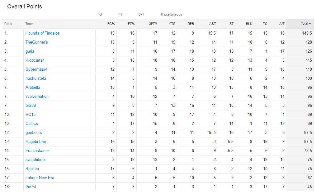 ✔ Yahoo! Fantasy NBA 2018/2019 [B], ბრძოლა სუპერლიგის საგზურისთვის