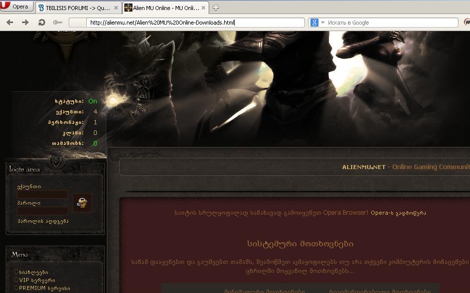 მაგის მერე ფორუმის გარდა არცერთი საიტი არ გამიხსნა ოპერაში მქონდა პრობლემა