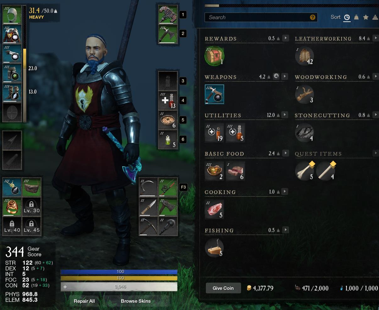 ხის ჭრა , ქვის მოპოვება 35-35, გატყავება 35, მცენარეები 29, თევზაობა 7, ერთი რკინის მადანი არ ვიცი სად ვნახო, ალბათ პატარა ვარ ჯერ მაგისთვის.