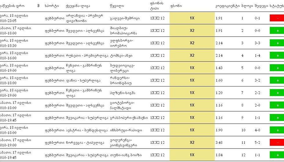 აბა ბიჭებო დღეს არ გვაქვს რაიმე საინტერესო პროგნოზები ?