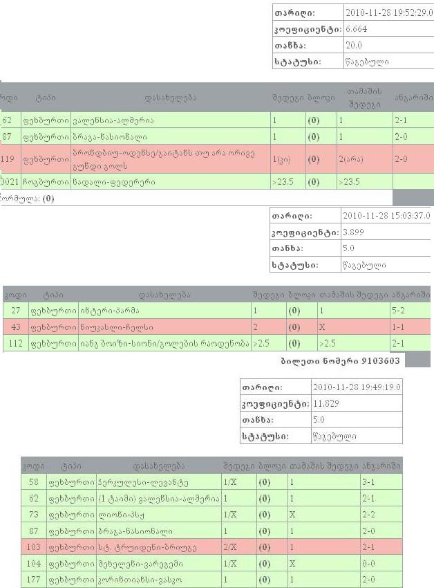 310 ფეხბურთი ვილიარეალი ბ.-ტენერიფე 2/X (0) 2 0-2 5 ლარი მაინც დამედო