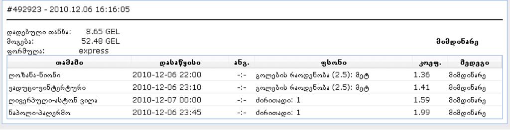 კოდი ტიპი დასახელება შედეგი ბლოკი თამაშის შედეგი ანგარიში