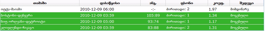 კოდი ტიპი დასახელება შედეგი ბლოკი თამაშის შედეგი ანგარიში
