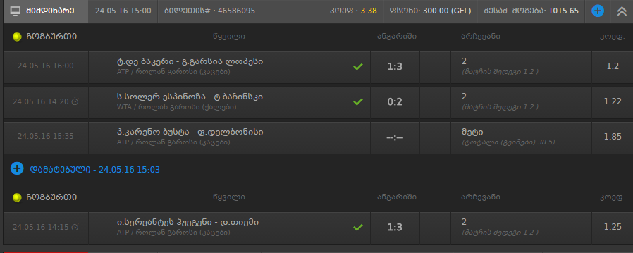 ჩოგბურთის განყოფილების ტოტალიზატორის თემა, Vol. 1