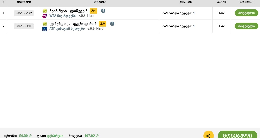 ჩოგბურთის განყოფილების ტოტალიზატორის თემა, Vol. 1