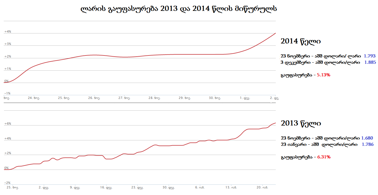 ლარი 2013 წლის მსგავსად, 2014 წლის ბოლოსაც გაუფასურდა
