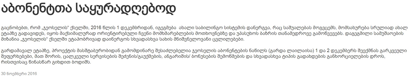 ჯეოსელის ინტერნეტი, ტელეფონზე