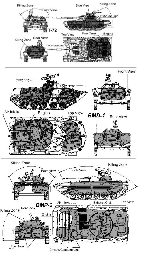 საბრძოლო ტექნიკის სუსტი და ნაკლებად დაცული ადგილები, საბრძოლო ტექნიკის დასაზიანებლად საჭირო ინფორმაცია