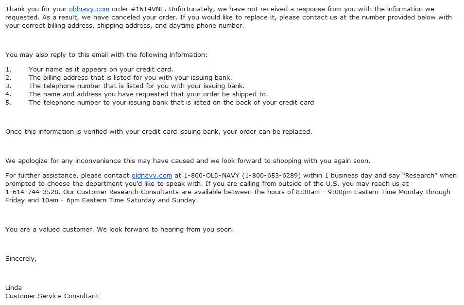 ინტერნეტ მაღაზია - OLD NAVY, შეკითხვები და პრობლემები