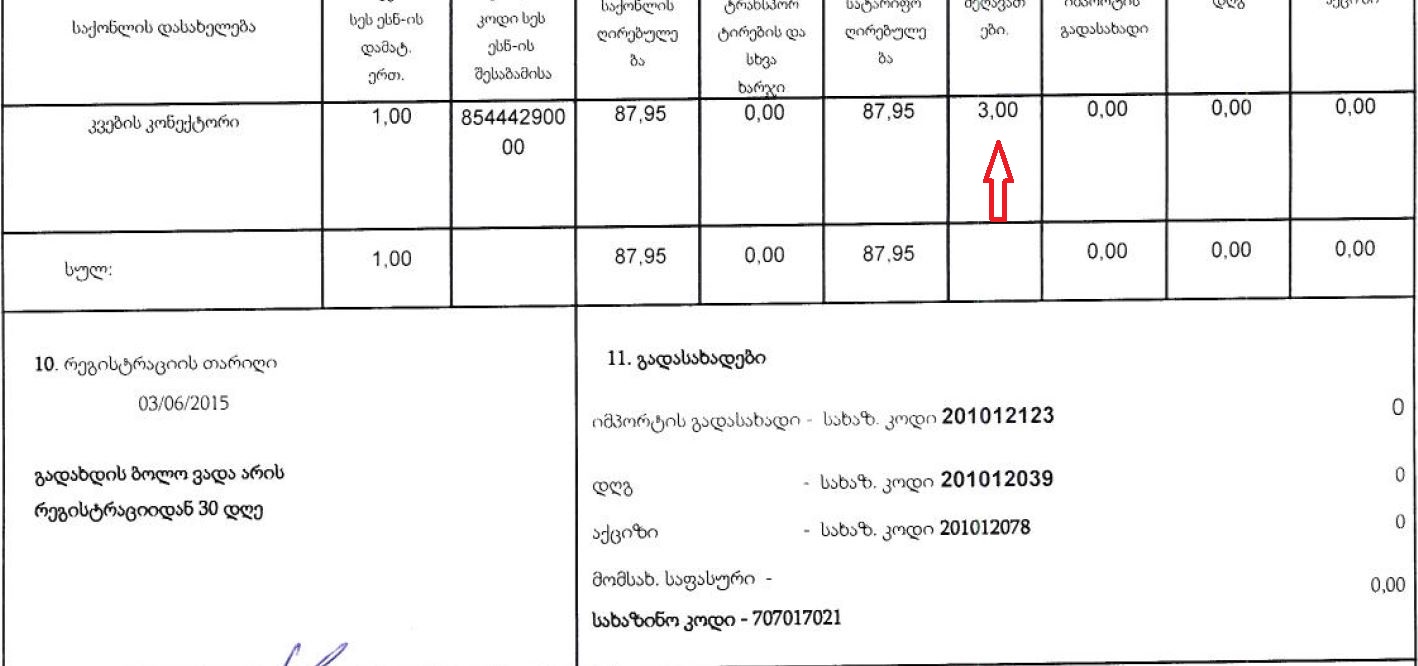 არ იბეგრება 300 ლარამდე 30 კგ-მდე ტვირთი,გინდა კერზო პირზე იყოს,გინდ იურიდიულზე.