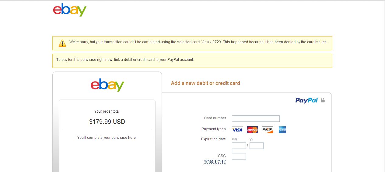 ებაიზე ვყიდულობ ნივთს და ასეთ რაღაცას მიგდებს არადა თანხა საკმარისზე მეტი მაქვს ბარათზე და ბანკშიც დავრეკე უკვე და არანაირი ბლოკი არ აქვს ბარათს ფეიფალთან გაარკვიეთო,ფეიფალი მეუბნება ბანკთან გაარკვიეო კაროჩე რავქნა აღარ ვიცი