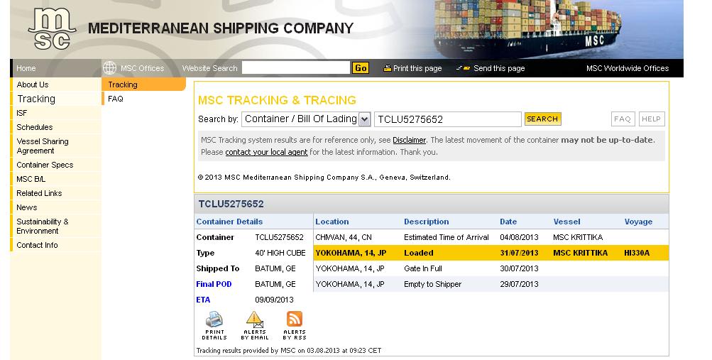 ISTANBUL, 34, TR Transshipment Discharged 27/07/2013 MSC ULSAN NT328A