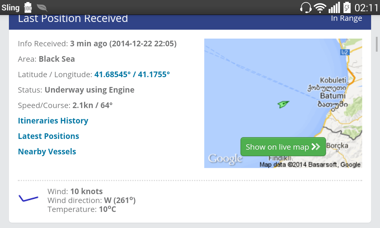 გემი დასაცლელად სავარაუდოდ 24.12.2014-ში დადგება.