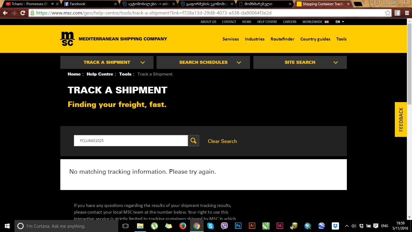 4 მაისს ჩაიტვირთა გემზე მარა გემი გამოვიდა თუ არა როგორ გავიგო ? მარტო კონტეინერის ნომერი ვიცი, რო ვეძებ ფოტოზე რაცაა ეგრე მიწერს, ტრეკი არ იძებნებაო და ესეიგი არ გამოსულა ხო თუ რას უნდება ერთი კვირა