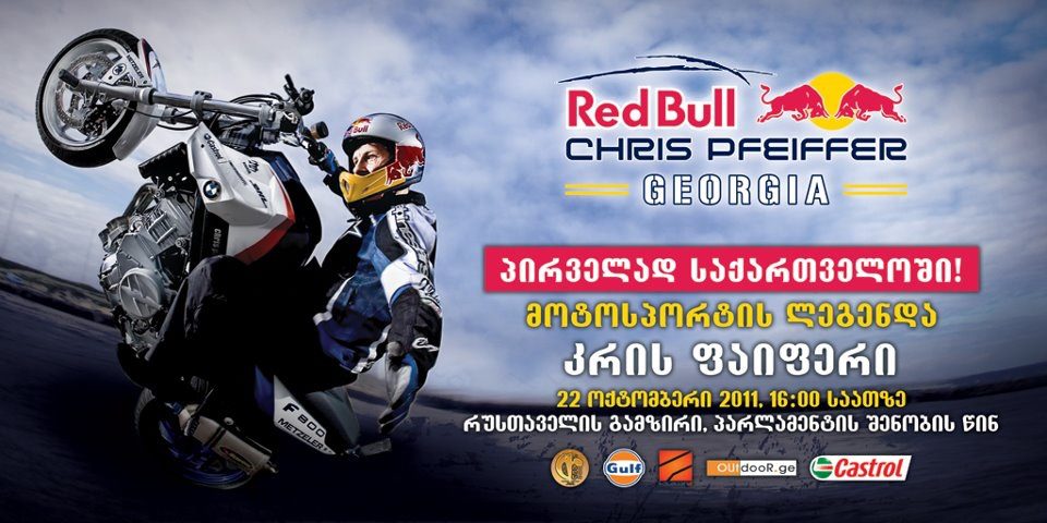 პირველად საქართველოში მსოფლიოსა და ევროპის ოთხგზის ჩემპიონი სთანთრაიდინგში, რედ ბულის სპორტსმენი კრის ფაიფერი ყველას დასანახად დაამტკიცებს, რომ მოტოციკლი უბრალოდ გადაადგილების საშუალება არ არის! კრის ფაიფერი თბილისში აჩვენებს, რომ მოტიციკლით შესაძლოა არა მხოლოდ სწრაფი მოძრაობა, არამედ წარმოუდგენელი ილეთების შესრულებაც: ფაიფერის არსენალშია 33 ადამიანზე გადახტომა ტრამპლინის გარეშე, 30 წამის განმავლობაში 15 ჯერ დატრიალება უკანა ბორბალზე და კოცნაც კი ილეთის შესრულების დროს.