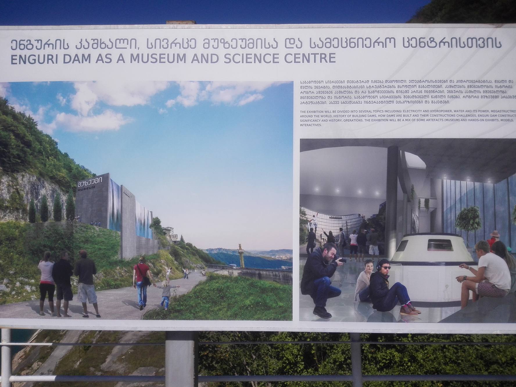 პროექტის მიხედვით, "ენგურჰესზე" მოეწყობა საბაგირო გზები, გადასახედები, შესაბამისი ინფრასტრუქტურა ექსტრემალური სპორტის მოყვარულთათვის, ასევე მსოფლიოში ერთ-ერთი ყველაზე მაღალი შუშის ლიფტი.