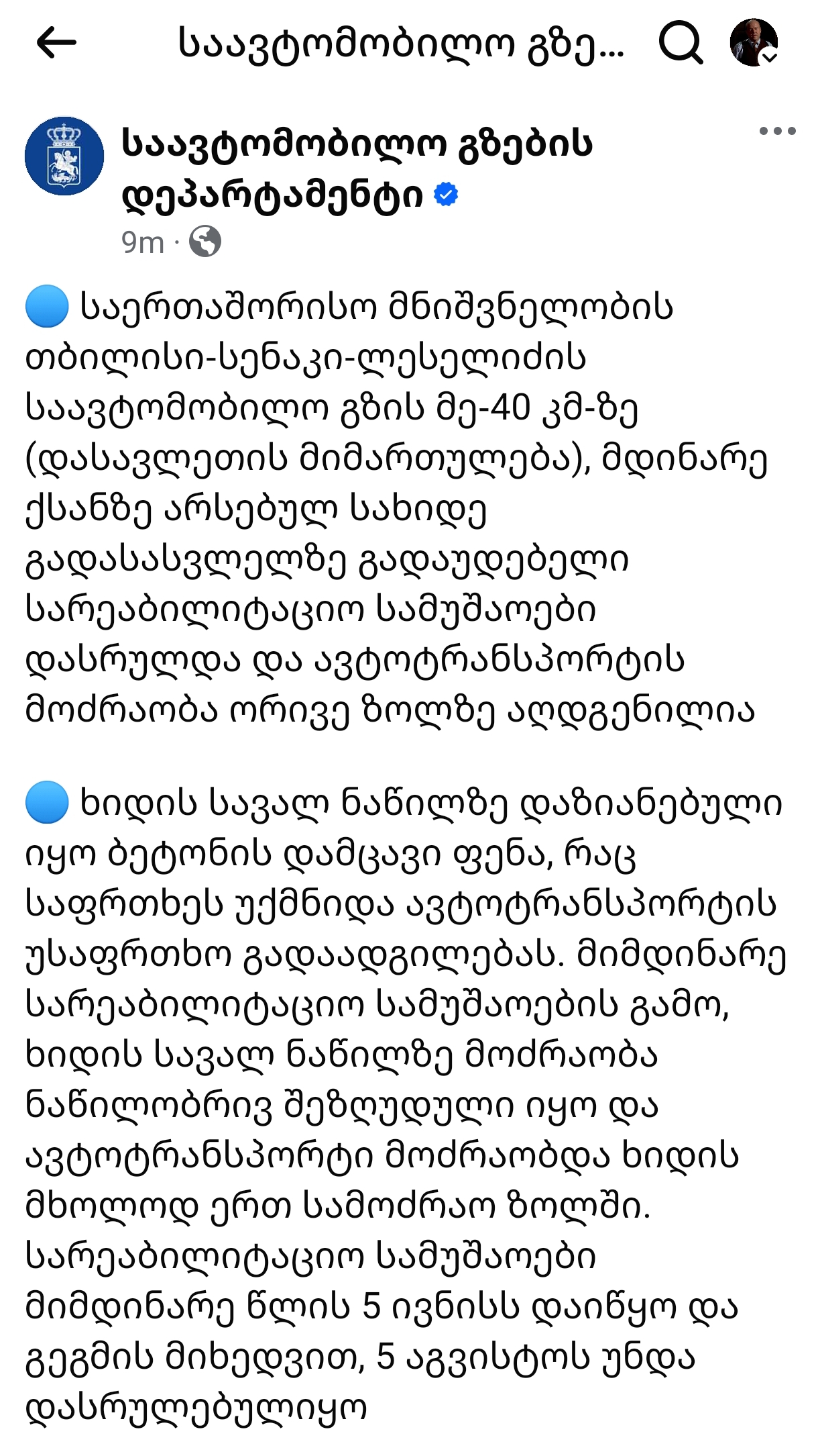 ავტობანი თბილისი-სენაკი-ლესელიძე (V18)