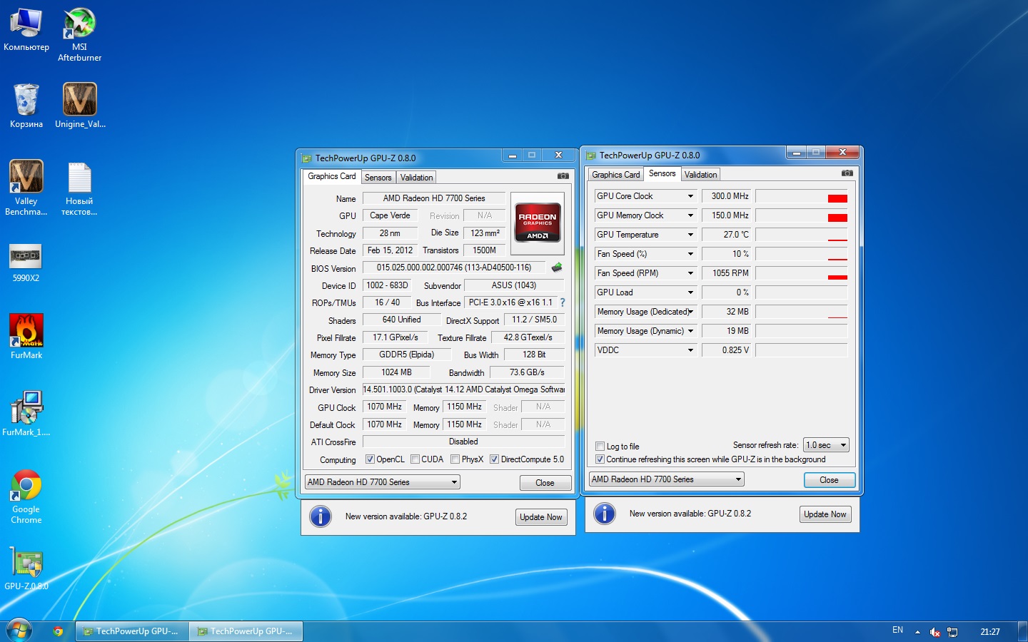 იყიდება Asus HD7770 DC 1024MB GDDR5 DX11