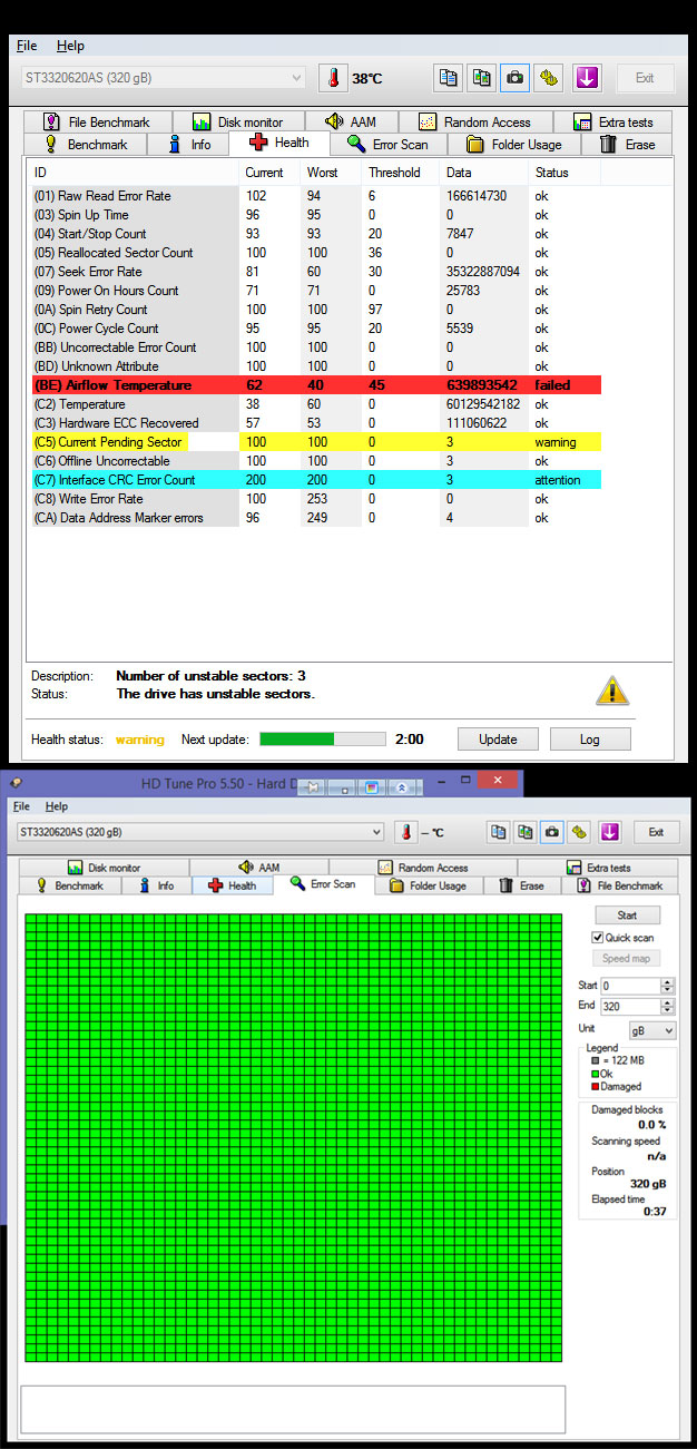 Seagates ცოტა პრობლემები აღმოაჩნდა ტესტირებისას. არადა მუშაობს უპრობლემოდ, მაგრამ მაინც დავდებ სქრინებს რომ იცოდეთ რაც სჭირს.
