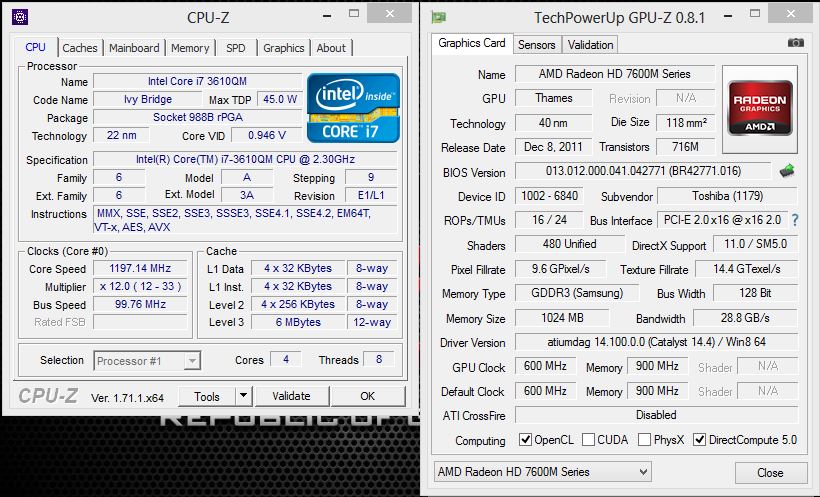 CPU: i7-3610QM Processor (6M Cache, up to 3.30 GHz)