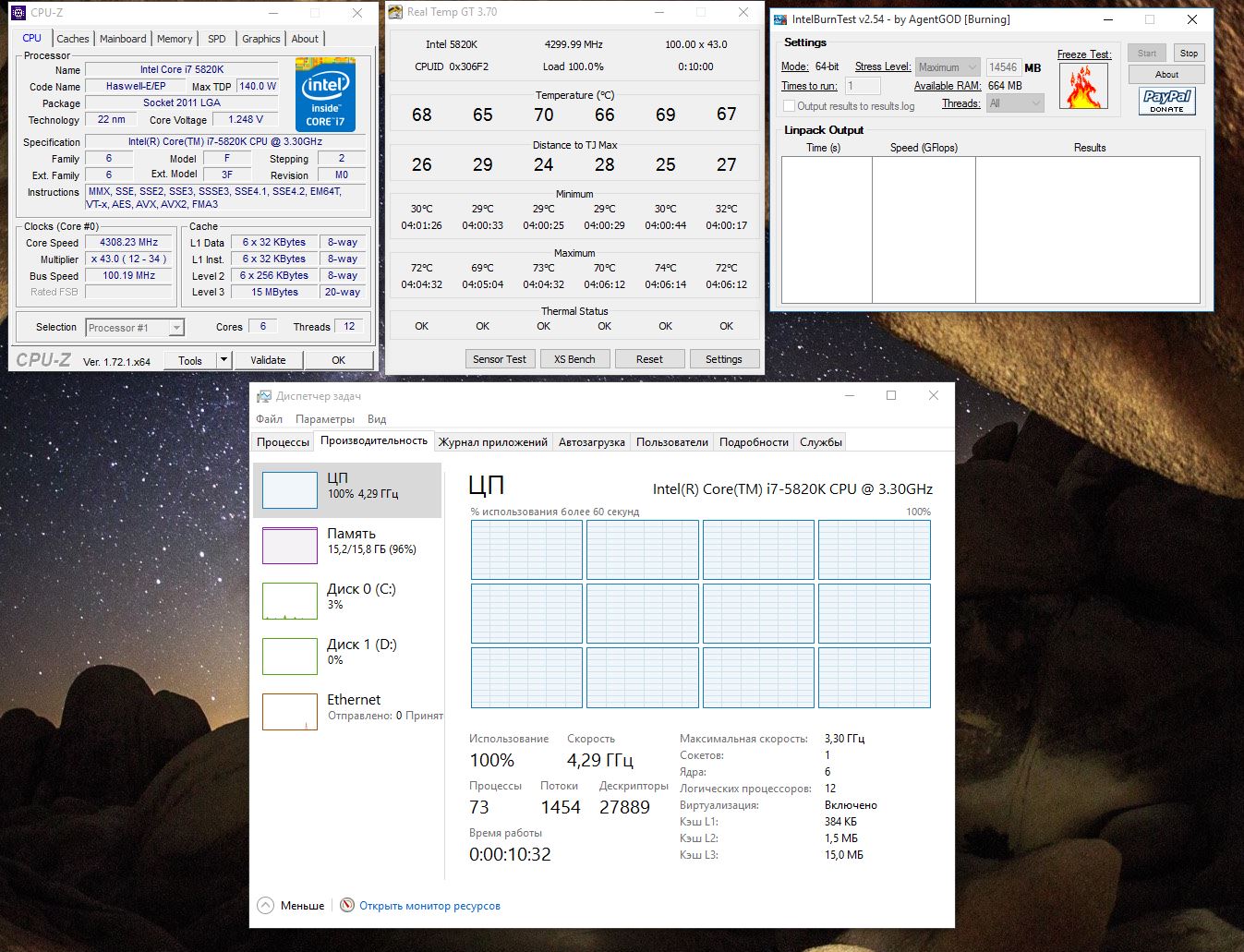 10 წუთიანი სტრესს ტესტი ისევ 4.3Ghz-ზე