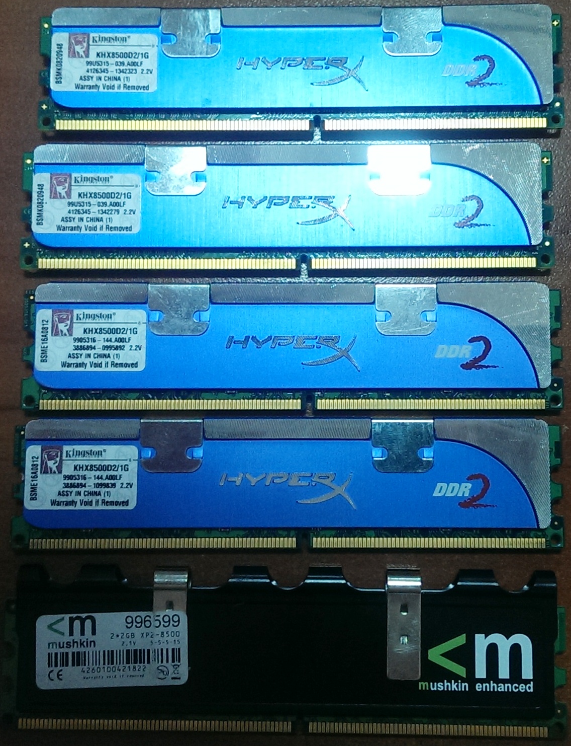 2 X 1gb Kingston Hyper X რადიატორებით, ცალმხრივ ჩიპებზე 1066 mhz - 20 GEL;