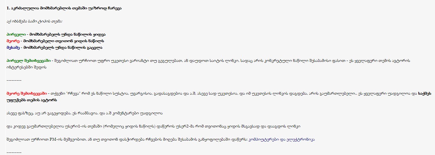 უფრო ფორმალურად თორე ადმინისტრაცია სრომ რეალურად უნდოდეს შეზღუდვა მაგის სპეციალურ ფანჯარის სკრიფტებს გააკეთებდა სადაც კომენტარს ვერ დაწერდი ანუ საკუთარ აზრს