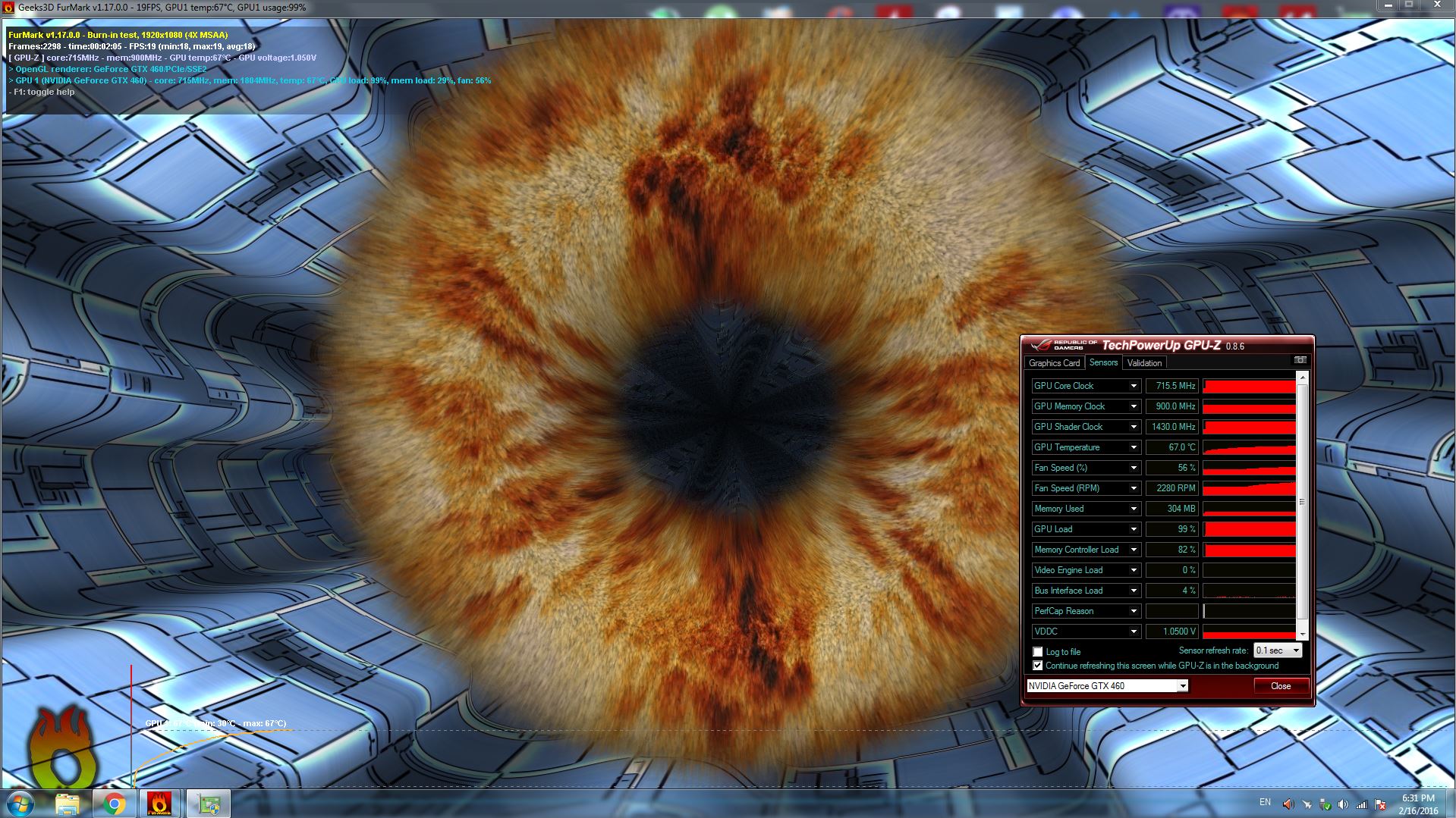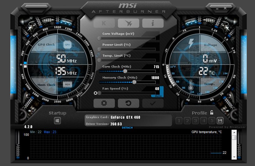 giorgiismeრადიატორს ზემოდან დავამაგრე 2 ცალი 80მმ-იანი ფანი. ერთი არის 4200 ბრუნიანი და დაერთებულია პირდაპირ ვიდეოზე, თავისით უმატებს და უკლებს აბაროტებს. მეორე არის 1800 ბრუნიანი და კვება აქვს მოლექსზე.