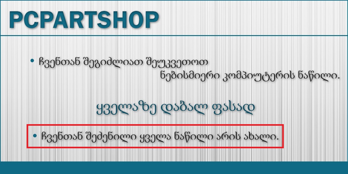 ვიღებთ შეკვეთებს კომპიუტერის ნაწილებზე, A-Z