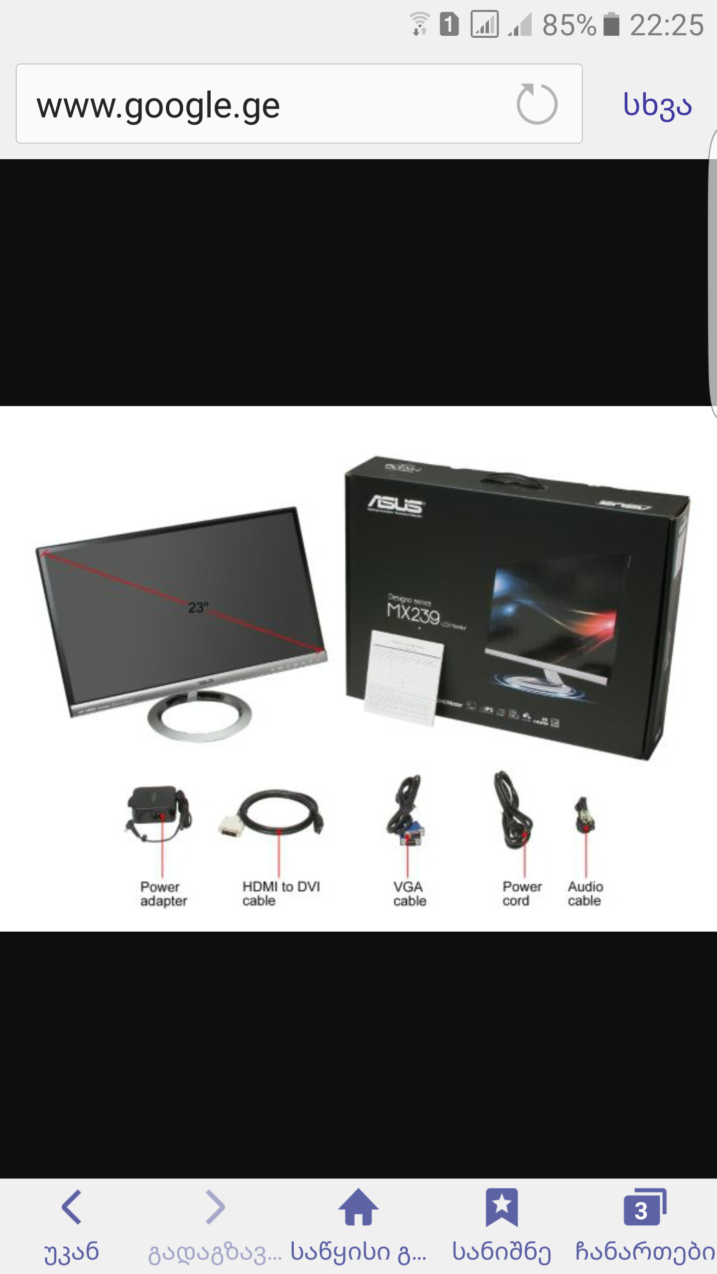 MONITOR:ASUS MX239 23" Full HD 1920x1080 IPS HDMI DV -->> 450ლარი
