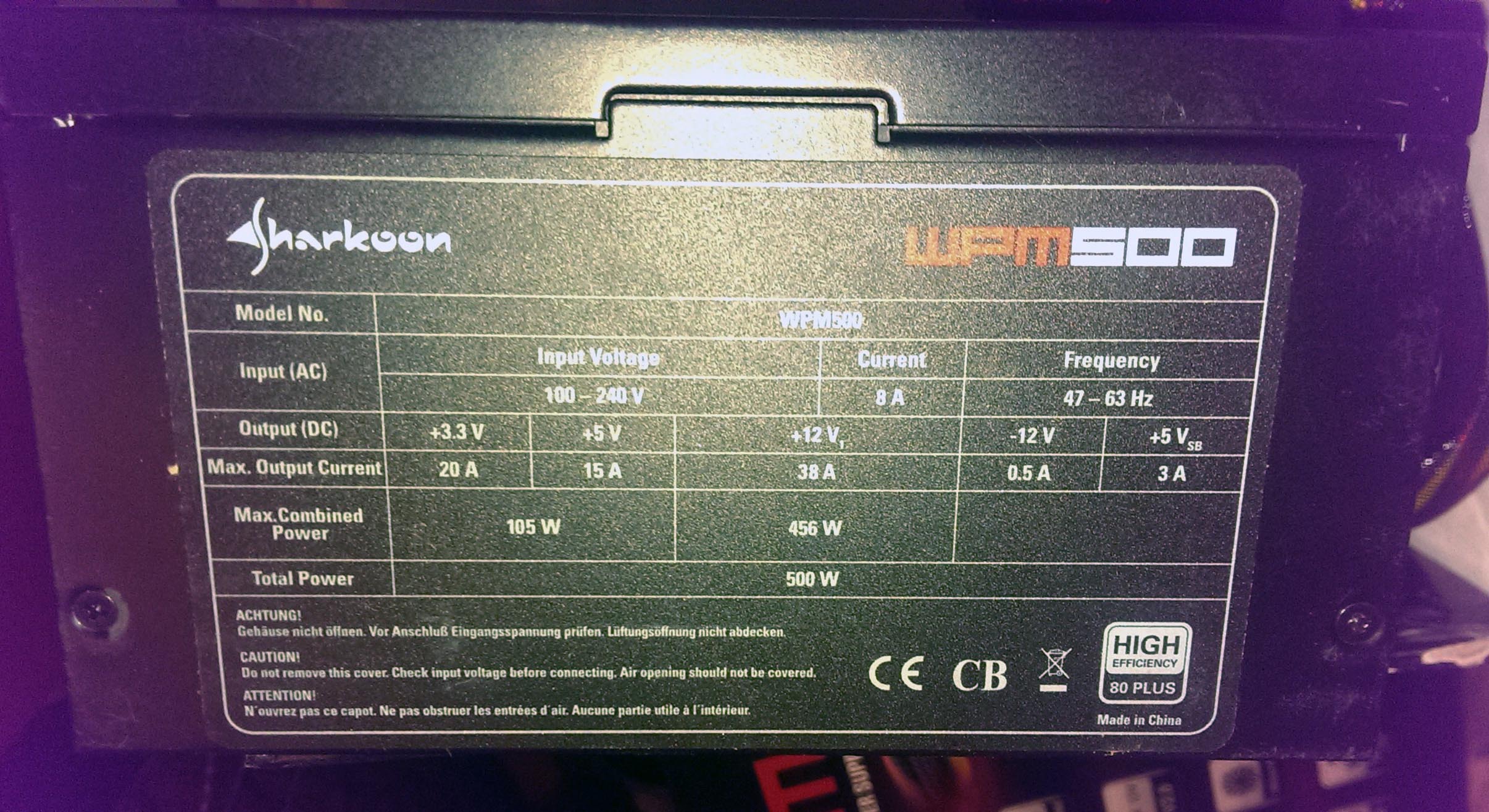 4. Sharkoon WMP500 +12V-38A 80 Plus - 100 GEL - 1 ცალი თბილისში, 1-იც ზესტაფონში