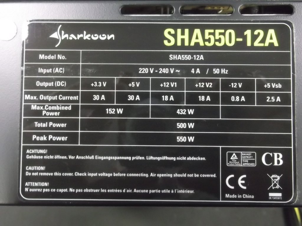 Sharkoon Sha550M 12A 80+ Bronze 19A+20A 120