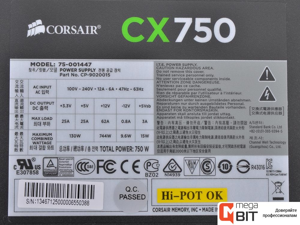 Corsair CMPSU-TX750 V2 750W 80 Plus Bronze power supply