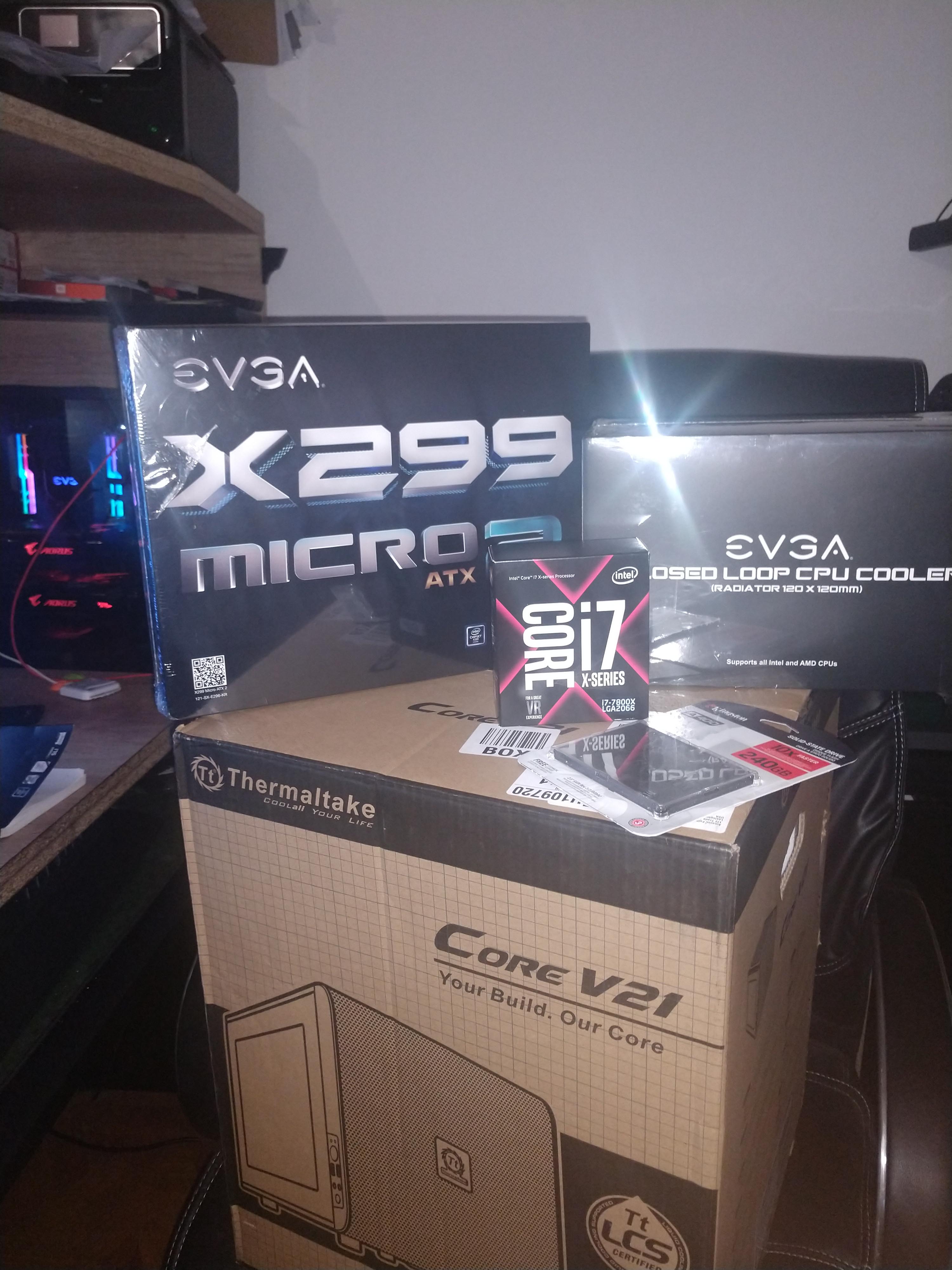 EVGA 850 G3, EVGA CLC 120. EVGA x299 micro2., i7 7800x, TT core v21, ყველაფერი იაფში