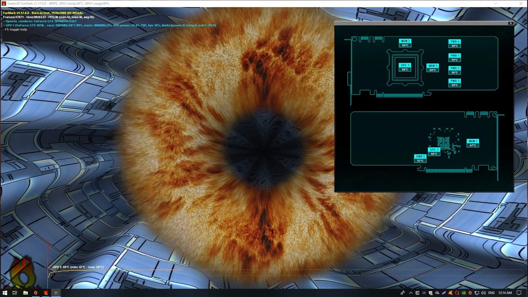 ეს ჩემი კარტის ტემპერატურები 45% ფანის ბრუნზე, კვების ფაზების ტემპერატურაც რო იდეალური აქვს. მაგარი ვერსია გამოდგა.
