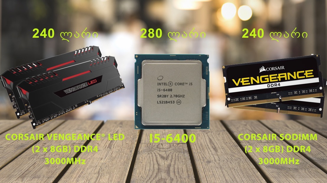 , i5-6400, CORSAIR LED 16GB, ლეპტოპის CORSAIR 16GB