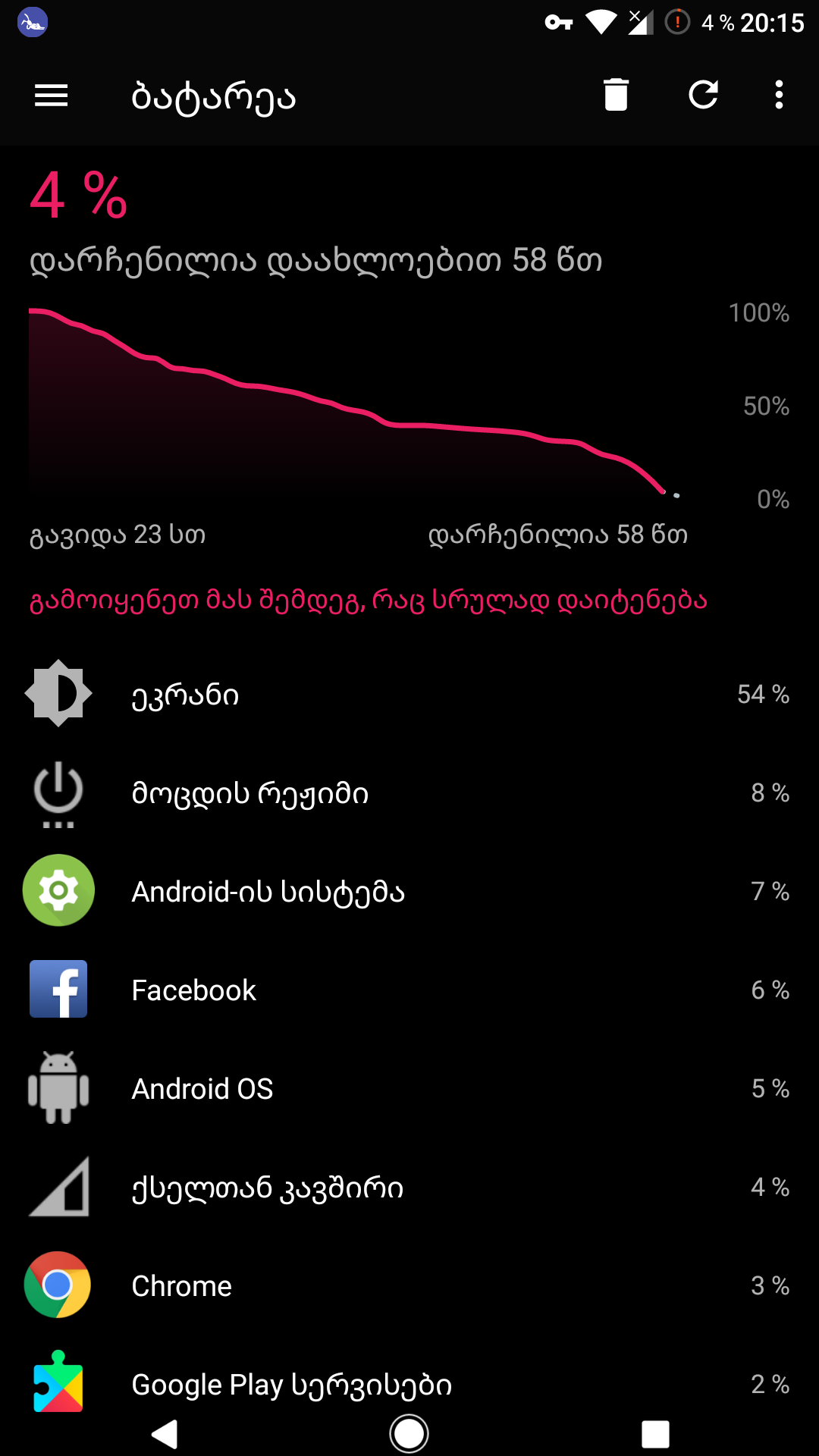 ეს კი ხან 4 G მქონდა ჩართული ხან wifi . ზოგადად 10 საათი მინიმუმ ეკრანი მაქსიმალურ განათებაზე როცა მაქვს. ვიდეოს ყურებაზე 15 საათი.