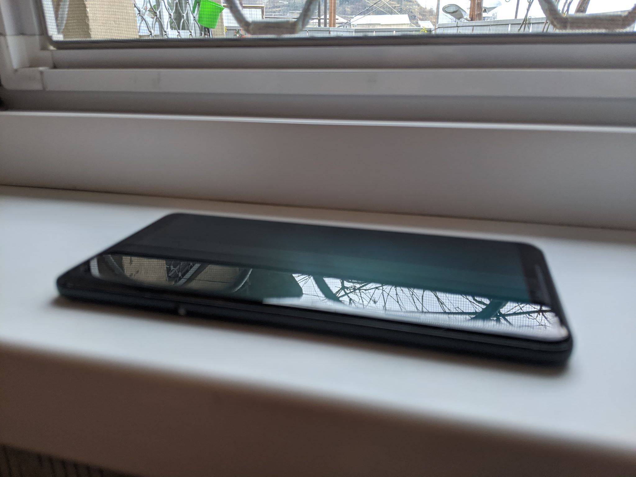 ცენტრში ძალიან მკრთალად თეთრ ფონზე აქვს G ასო, არანაირ პრობლემას არ უქმნის ხმარებაში, არც პლატის პრობლემა არაა, დიდი ხნის განმავლობაში იყო ერთიდაიგივე სურათი დაყენებული ეკრანზე და მასე დაიტოვა (ფოტო 2). თეთრ ფონზე ჩანს მხოლოდ ისიც ძალიან მკრთალად ხმარებაში ვერც შეაყყობთ.
