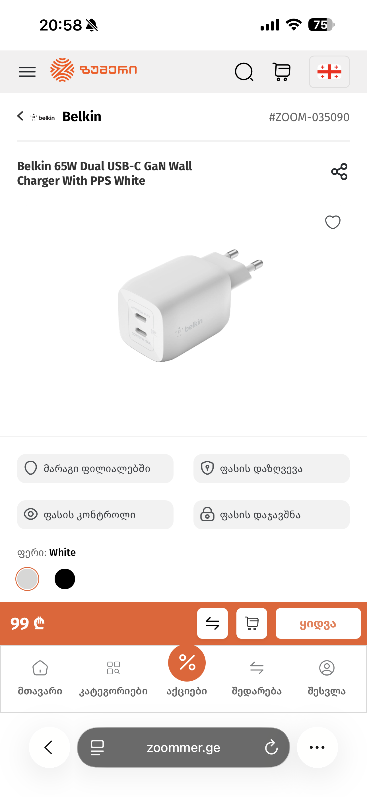 https://zoommer.ge/mobiluris-aqsesuarebi/be...ps-white-p45142ამერიკულია. მოვაყოლებ ხარისხიან გადამყვანს. 30 ლარად რომ ყიდიან ეგეთს ))