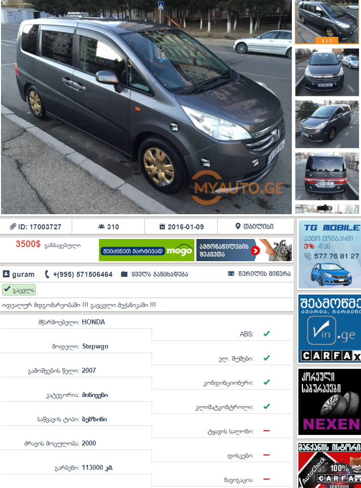 http://www.myauto.ge/index.php?action=deta...car_id=17003727სულაც არ ვაპირებდი ყიდვას ჯერ ჯერობით მაინც მაგრამ იძულებული ვარ ამ მთავრობის გამო ასე მოვიქცე რადგან ტრაკისკენ და უფკულისკენ მიაქანებენ ქვეყანას