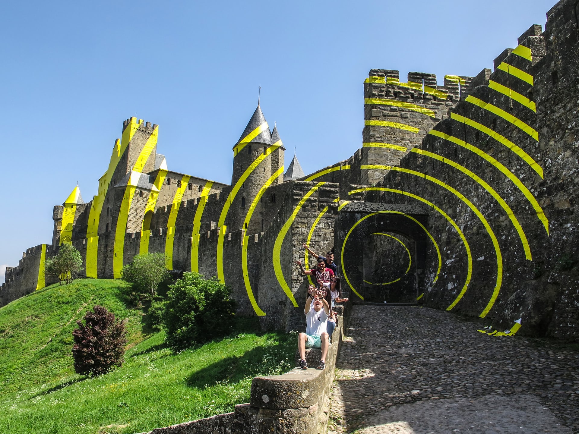 Concentric circles created by the Swiss artist Felice Varini help to mark the 20th anniversary of the medievаl castle becoming a Unesco world heritage site
