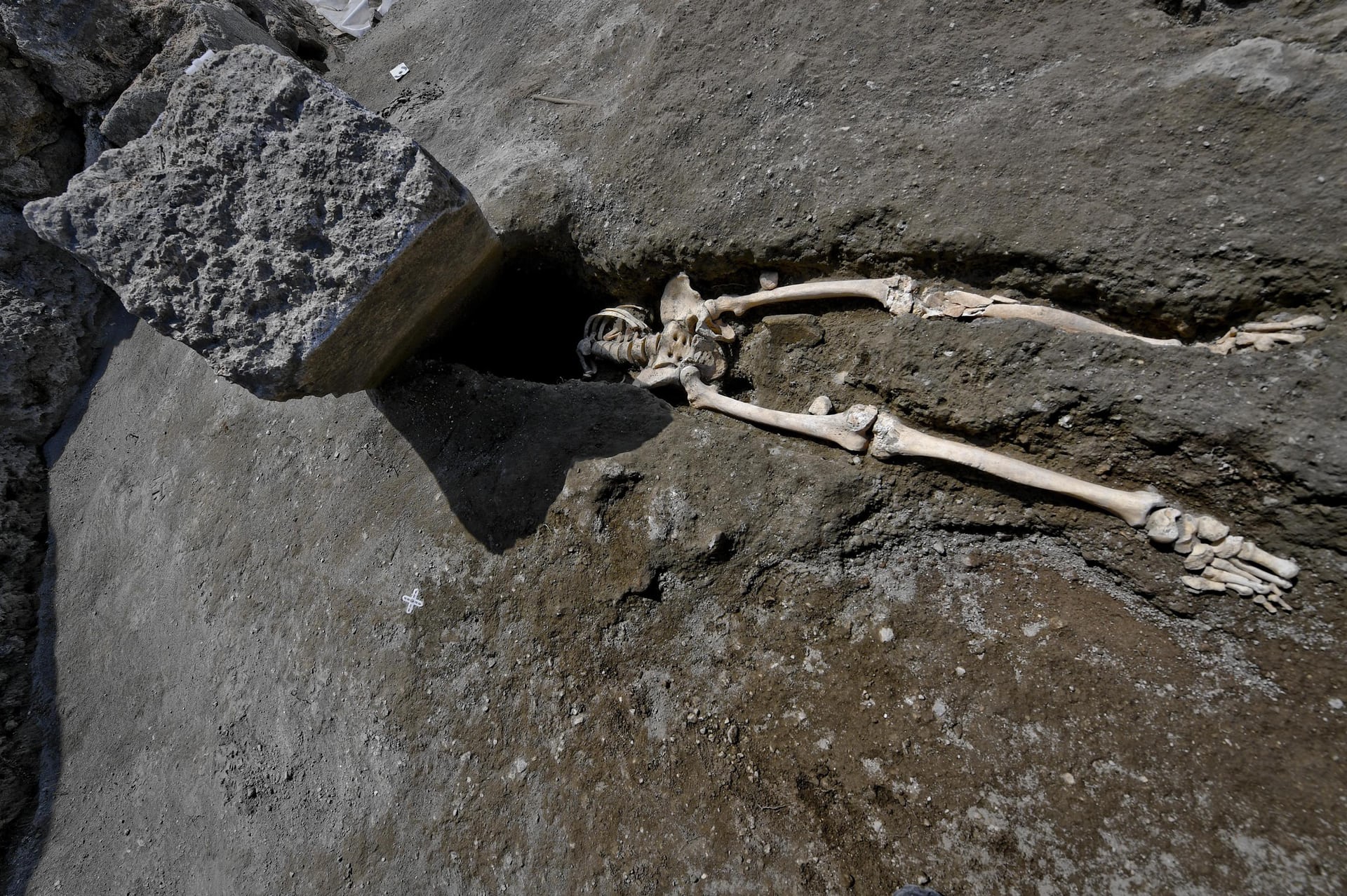 The skeleton of a victim of the eruption that destroyed Pompeii was discovered during the most recent excavations carried out at the archaeological site. The skeleton is believed to be the remains of a 35-year-old man with a limp who was hit by a volcanic cloud.