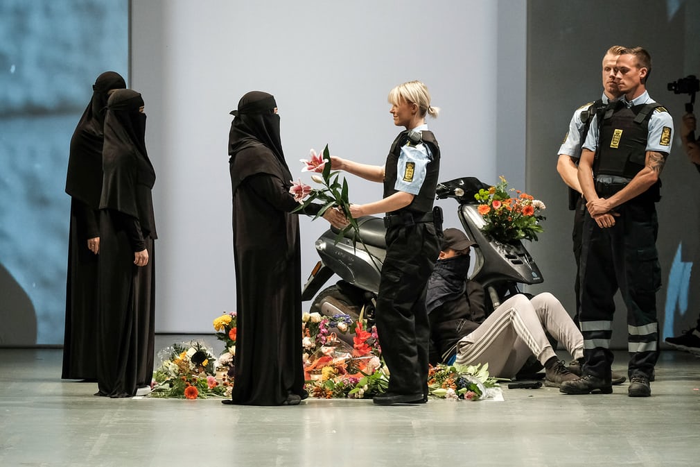 Danish designers MUF10 protest against the Danish burqa ban during Copenhagen fashion week.