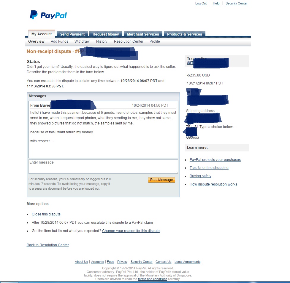 2. ეს ნივთები მჭირდებოდა 29-30 ოქტომბრამდე (რაც მიმოწერაში რამდენჯემრე გავუმეორე) თუ დაგვიანდებოდა აღარ მაწყობდა. ნივთები არ მიმიღია აქამდე