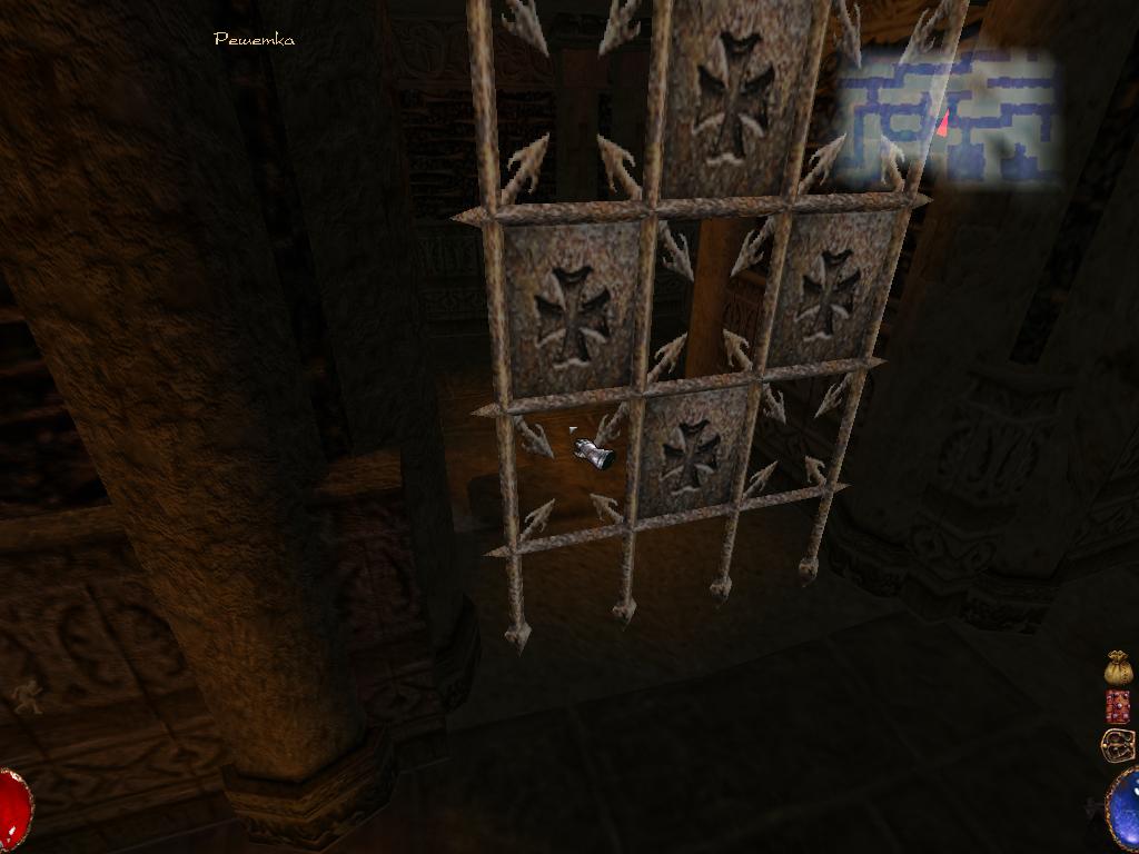 Надеваем шлем и идем в склеп к курице. При надетом шлеме видим Иннута