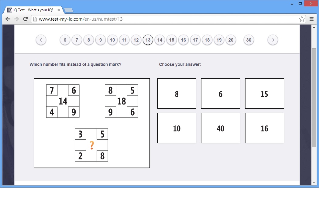 არა, აქ პასუხი 8 არის. ცენტრში არის ჯამი, ოღონდა ზედა მარჯვენა კუთხის რიცხვი მინუსით უნდა აიღო...