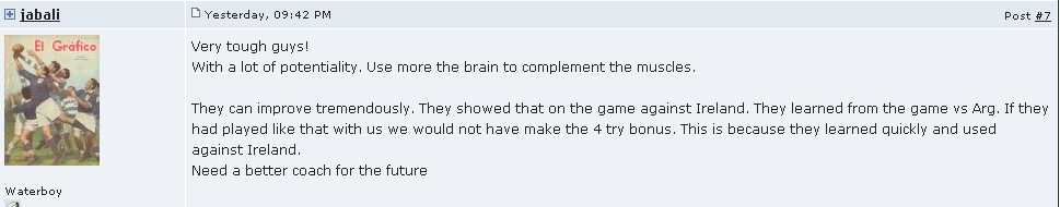 On the other side, they're quite limited possessing little or no attacking threat from 11-15. They also defend naively and don't seem to have a defensive pattern. Goalkicking and drop kicking needs improvement. Had they taken those chances against Ireland, they would have won the game.