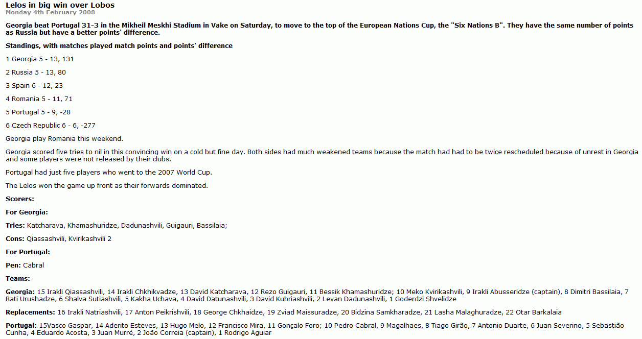 საქართველო - რუმინეთი, რაგბი. ევროპის ერთა თასის მატჩი 9 თებერვალს.