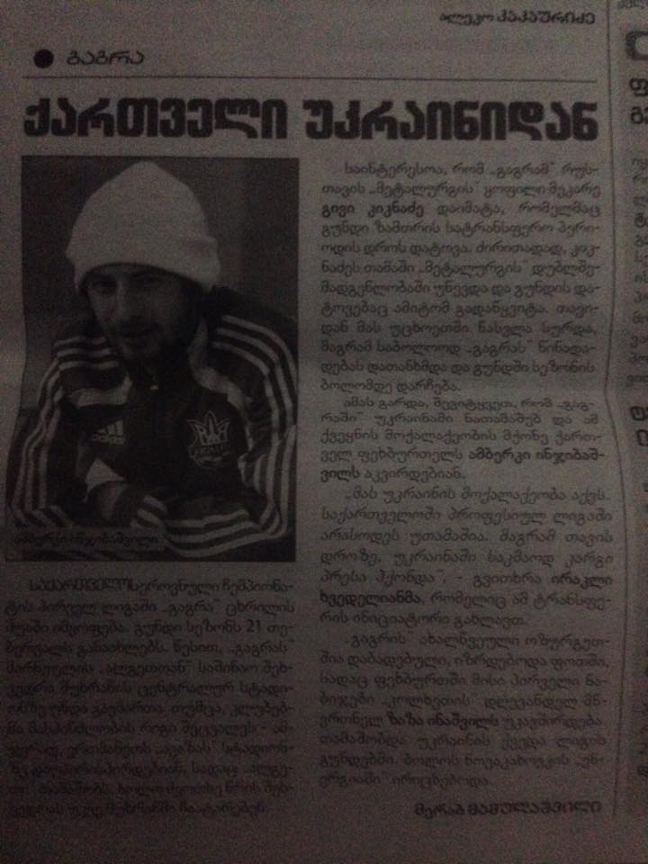 - საქართველოში ფეხბურთის სტილი უკრაინულისგან განსხვავებულია, თუმცა ვფიქრობ, რომ მალევე ავუღებ ალღოს. "გაგრაში" ძალიან კარგი ფეხბურთელები არიან, სამწვრთნელო შტაბი კი ადაპტაციაში მეხმარება. ისე კი, დარწმუნებული ვარ, რომ კლასით ქართული ფეხბურთი უკრაინულს არ ჩამოუვარდება.
